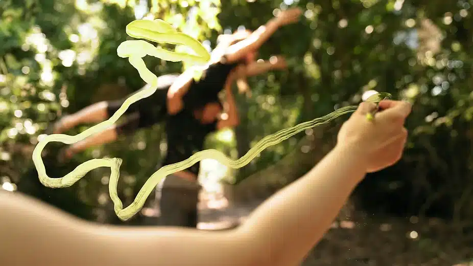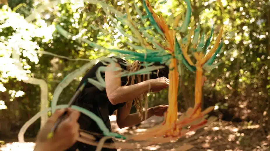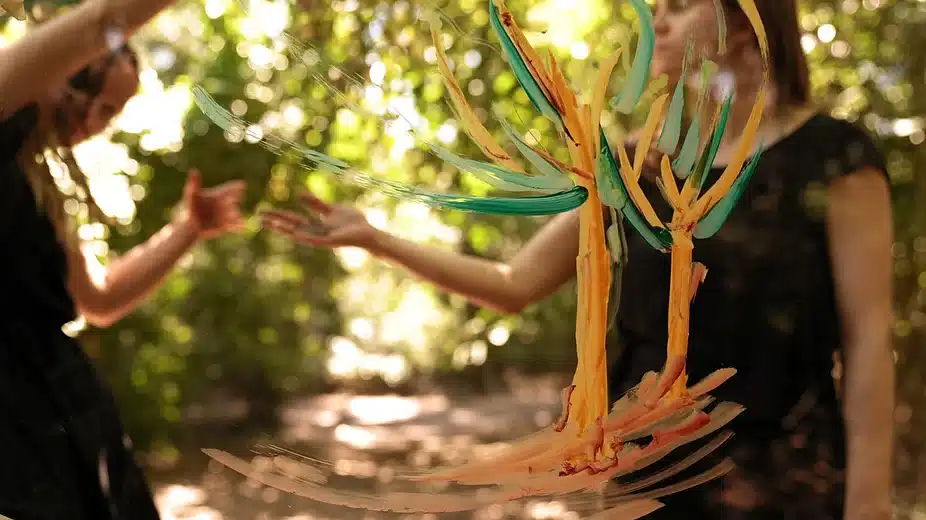 En esta danza somos más que cuerpo, somos trazo, somos parte de un cuadro vivo. Los árboles aportan su estructura al dibujo, a la danza, se mueven, extienden sus ramas para conformar una escenografía en movimiento.