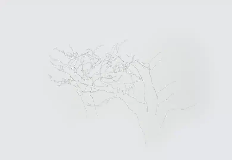 Este trabajo, constituido por más de 50 dibujos en diferentes formatos, gira en torno a la idea de imaginación, esa imaginación que constituye lo puramente humano, creadora de mundos propios, y la manera en que las personas construimos nuestros paisajes íntimos, realizando un collage a través de fragmentos de memoria.