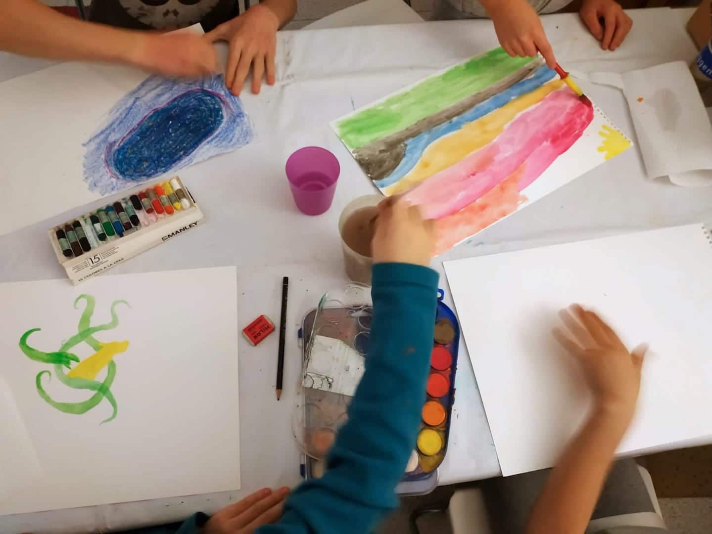 El taller de arteterapia se trata de un espacio cuidado y seguro donde poder expresarnos a través de dinámicas creativas y lúdicas. A través del dibujo, la pintura, el modelado y el movimiento, exploraremos nuevas formas de expresarnos más allá de las palabras.